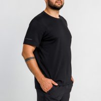Эта однотонная чёрная футболка создана для тех, кто живёт в ритме города и ценит свободу движений. Мягкий хлопок (67.9%) дарит комфорт и «дышит» вместе с тобой, а полиамид (32.1%) добавляет ткани прочности и эластичности.